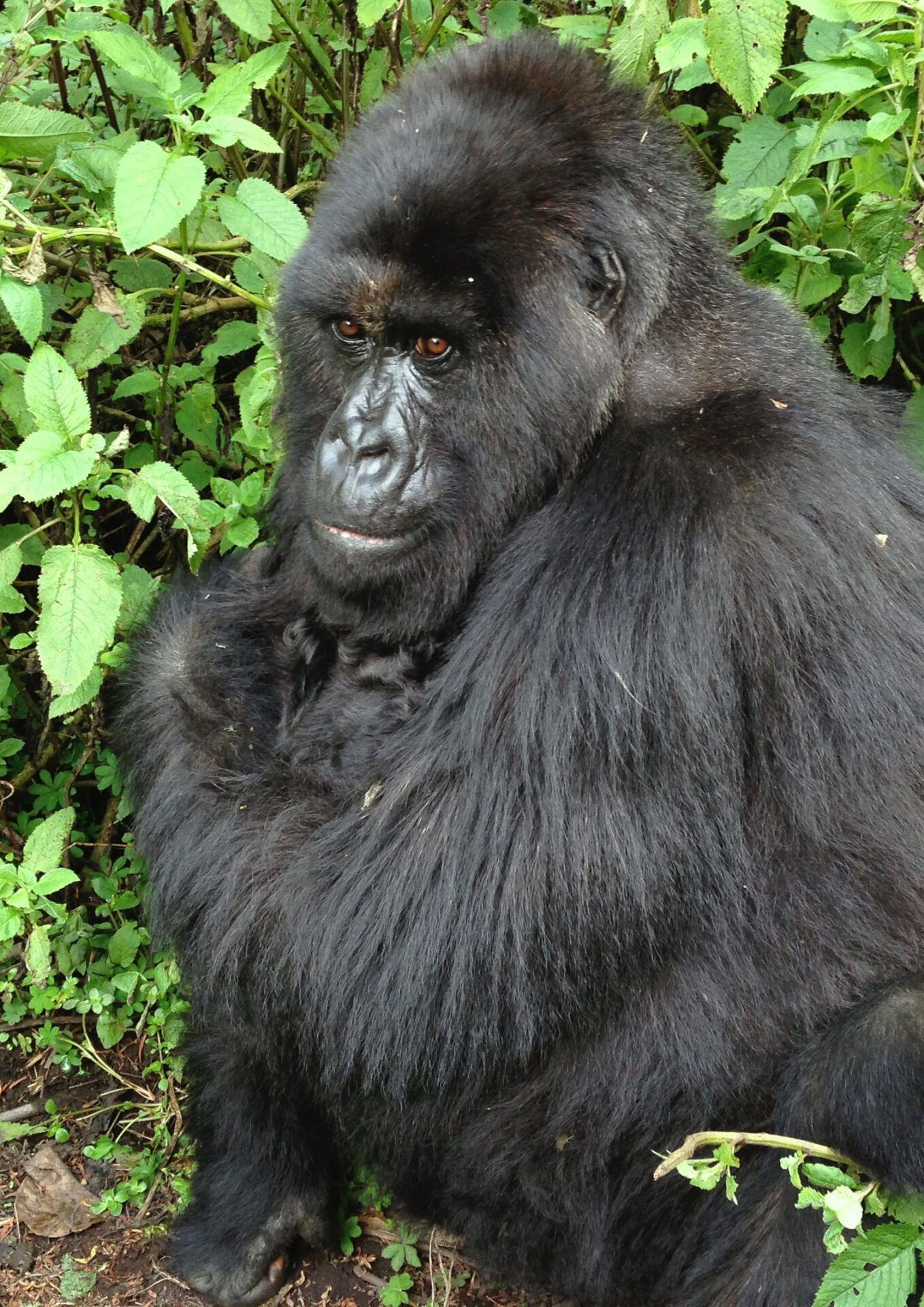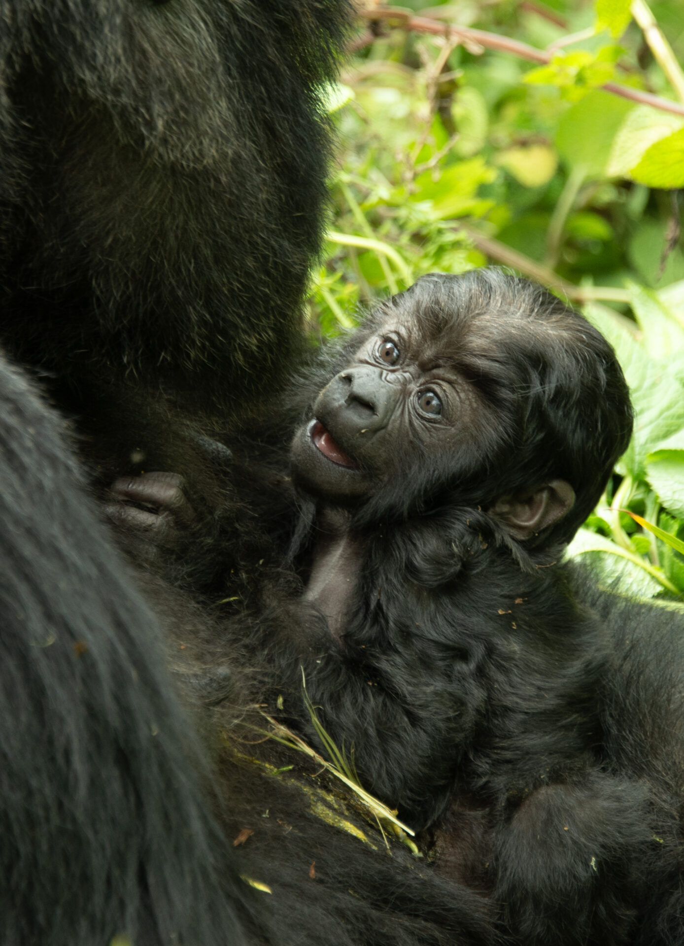 『お母さんゴリラを見つめる赤ん坊ゴリラ